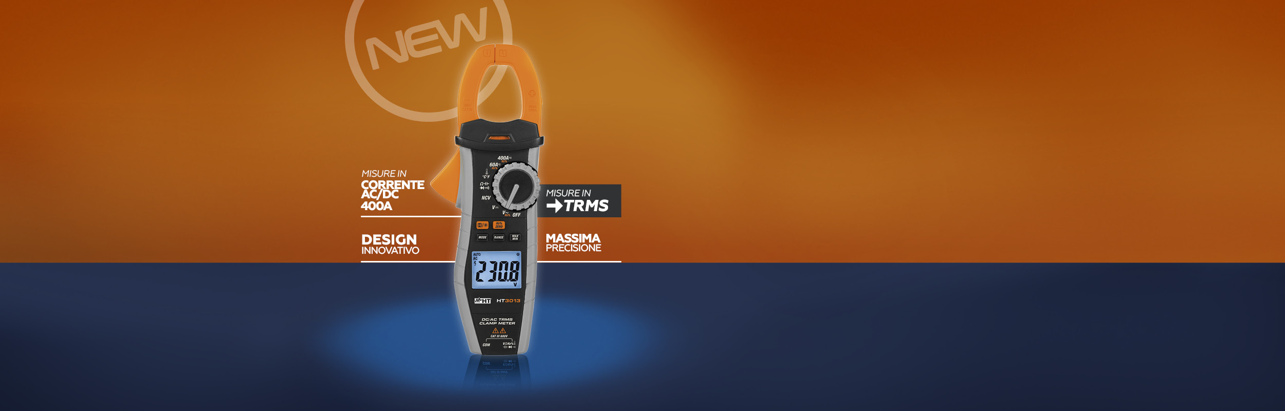 Pinza amperometrica TRMS per corrente AC/DC fino a 400A.